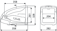 1,5-Liter-Flaschen, umschaltbar kalt/warm, integriertes Kabelfach |